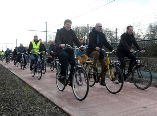 Van Duffel naar Sint-Katelijne-Waver ben je met de fiets voortaan sneller dan met de wagen. Dat dankzij de fietsostrade, de fietsweg die nu naast de spoorweg ligt. De aanleg ervan, inclusief drie fietsbruggen, is betaald door de provincie Antwerpen en gedeeltelijk gesubsidieerd door de Vlaamse overheid. 160 geïnteresseerden trotseerden zaterdag de hevige windstoten om samen met gedeputeerde Luk Lemmens het nieuwe traject officieel in te fietsen.