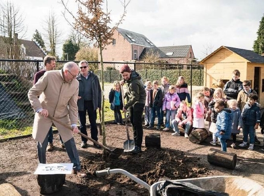 Leerlingen van de basisschool Sint-Jozef én basisschool De Springplank Broechem geven het startschot voor vergroeningsacties op hun speelplaats